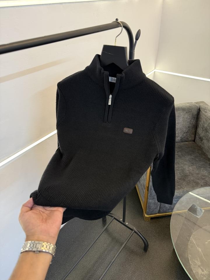 Home Premium sweatshirts Dio r imported yarn soft feel knitted half zip sweater black
