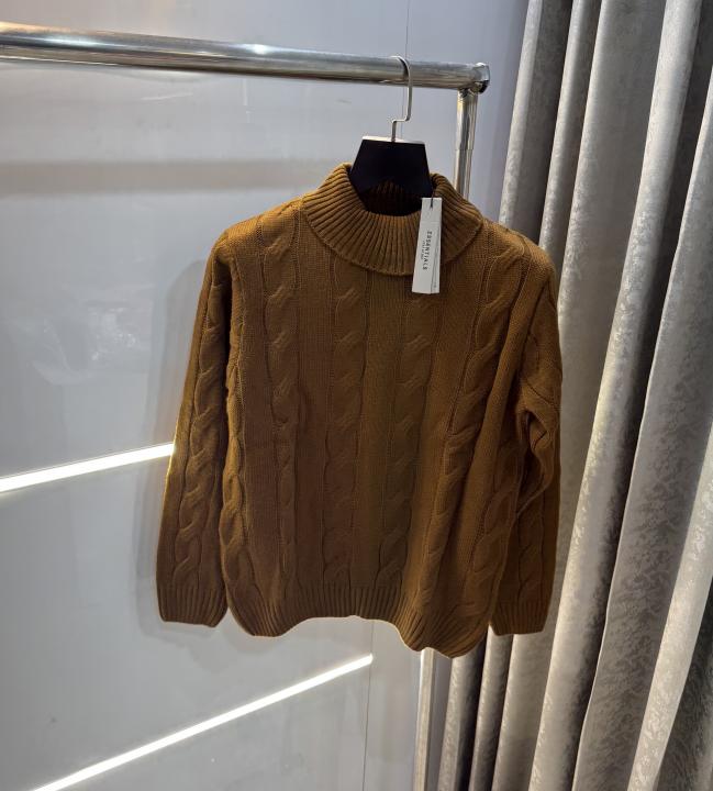 Home Premium sweatshirts Essential Light Brown Imported Knitted Turtle Kneck Pull Over